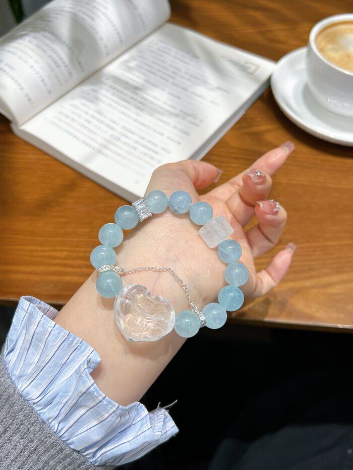 Cultural Craftsmanship:The beads are arranged in alternating rhythm, balancing passive (Aquamarine’s Yin) and active (Quartz’s Yang) energies.
