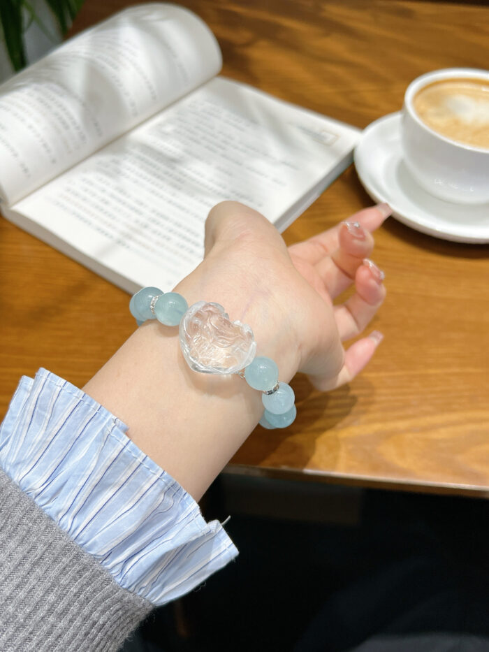 Inspired by the tranquil harmony of Eastern philosophy, this Aquamarine and Clear Quartz Bracelet embodies the union of water and light—two sacred elements revered in Taoist, Buddhist, and Confucian traditions. Like a miniature Zen garden and a drop of the celestial ocean, it carries the essence of purity, wisdom, and boundless calm.