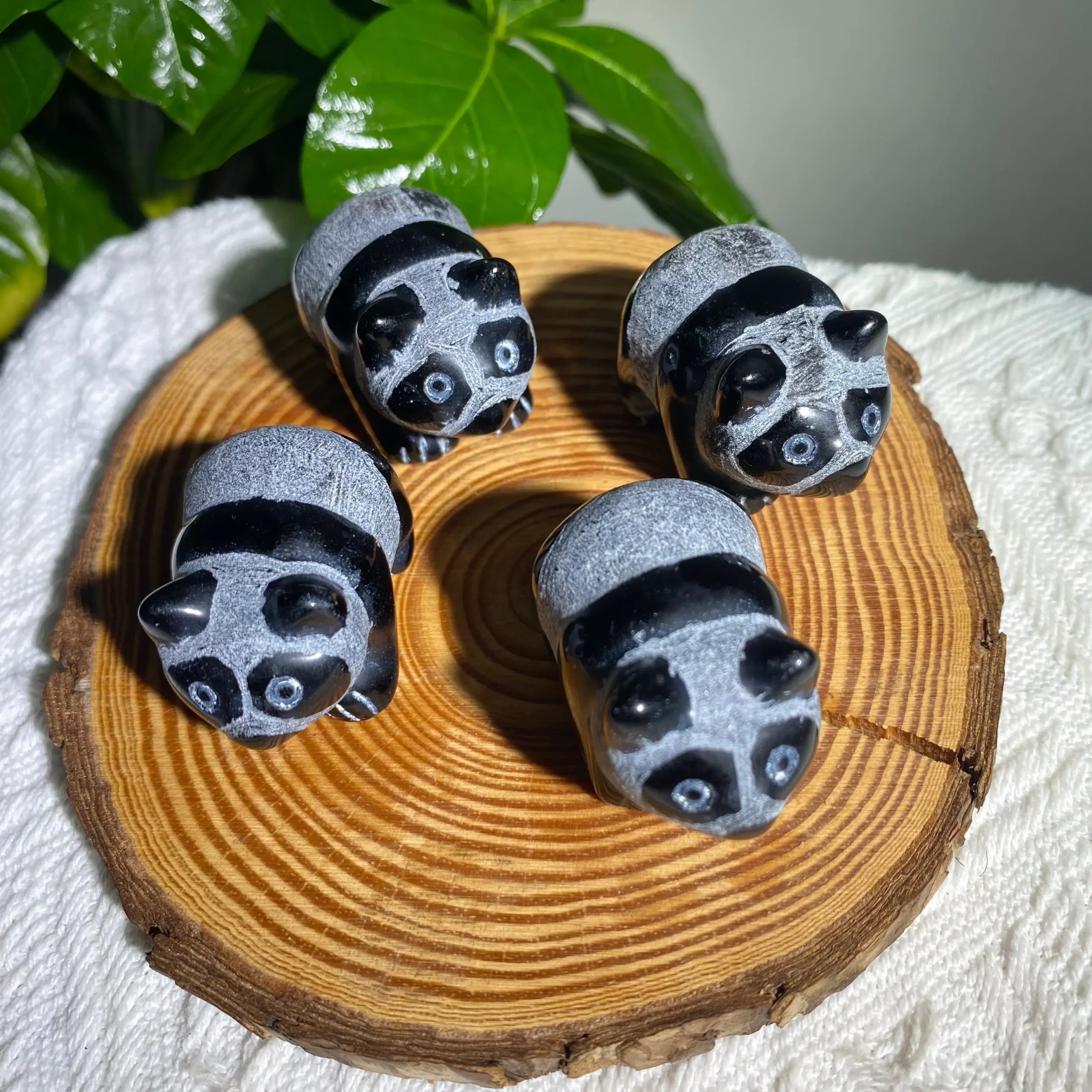 Home CARVING & CRAFT Natural Black Obsidian Panda Carving – Gentle Protector Figurine for Balance & Peace Wholesale Crystal