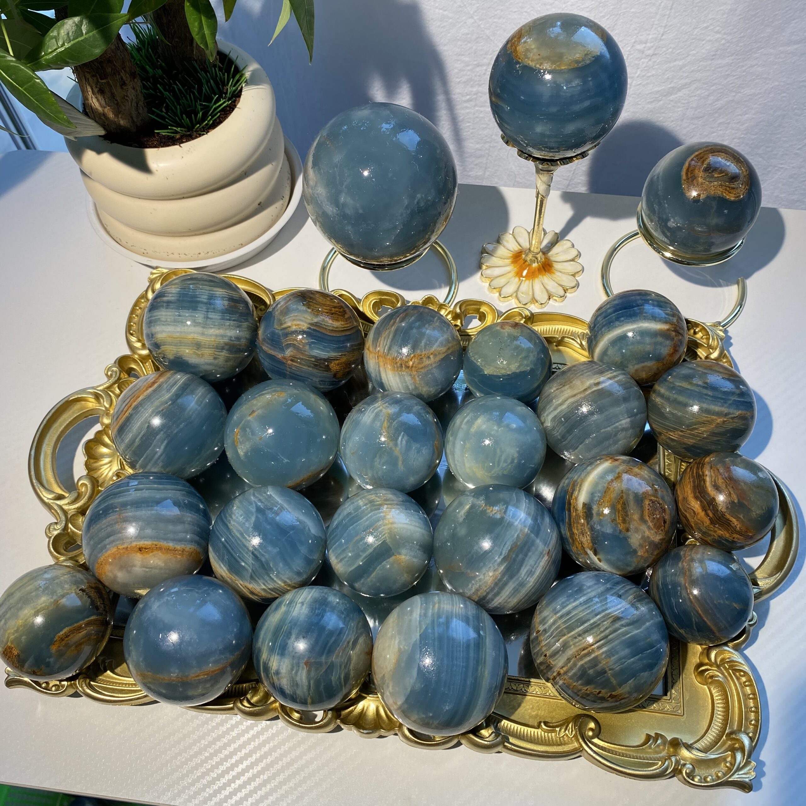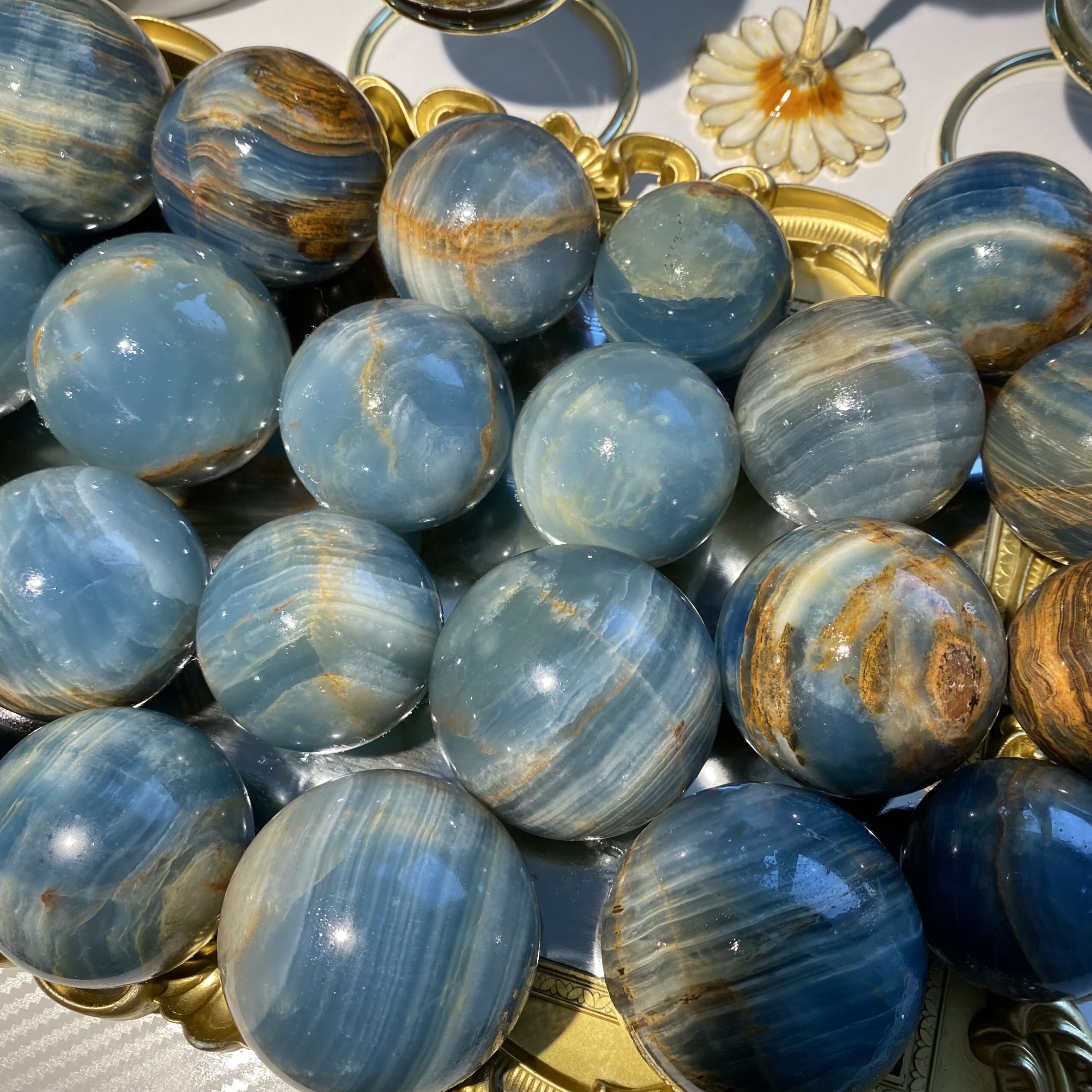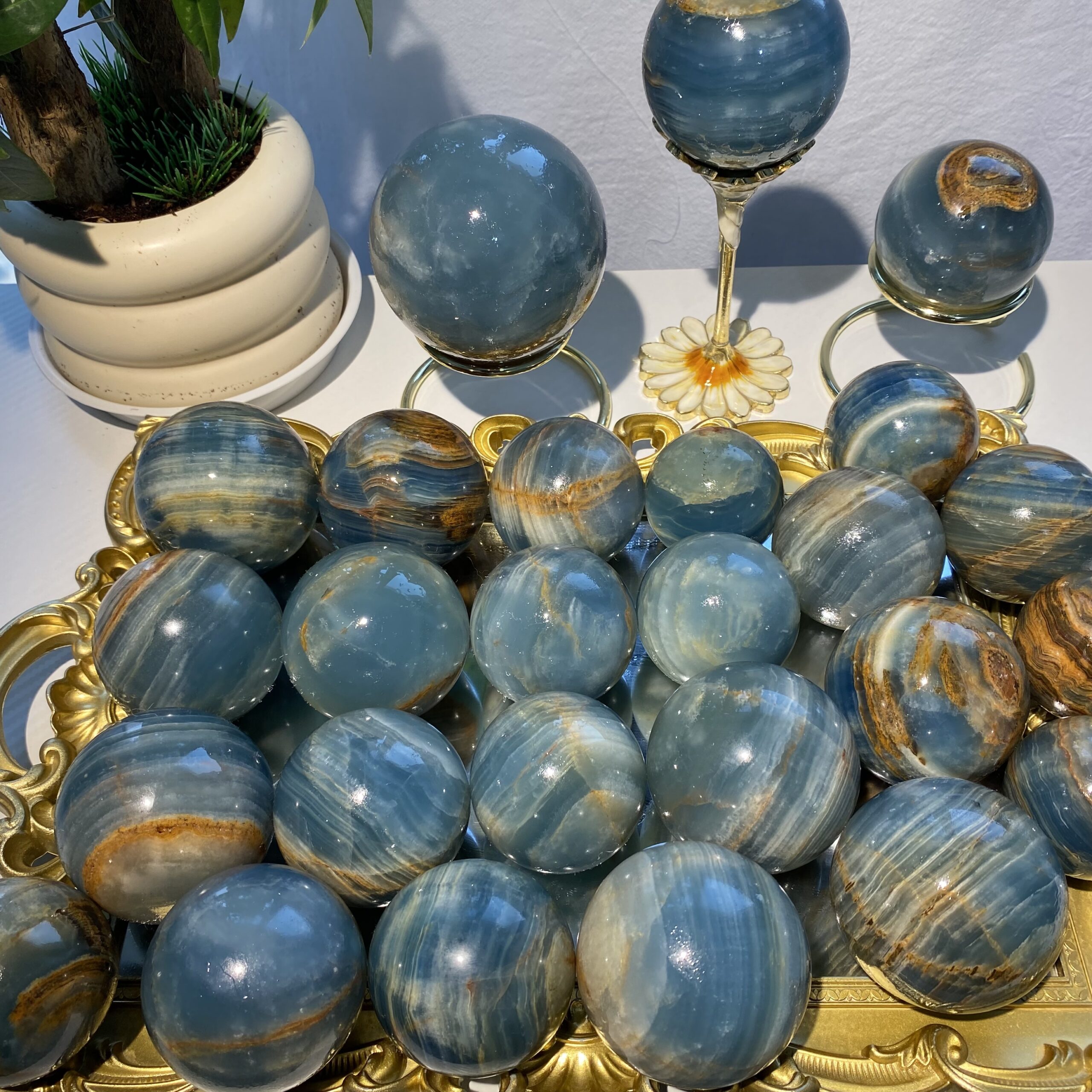 Home SPHERE CRYSTAL Natural Blue Onyx Sphere – Stress Relief Stone for Meditation & Focus Random delivery Wholesale Crystal