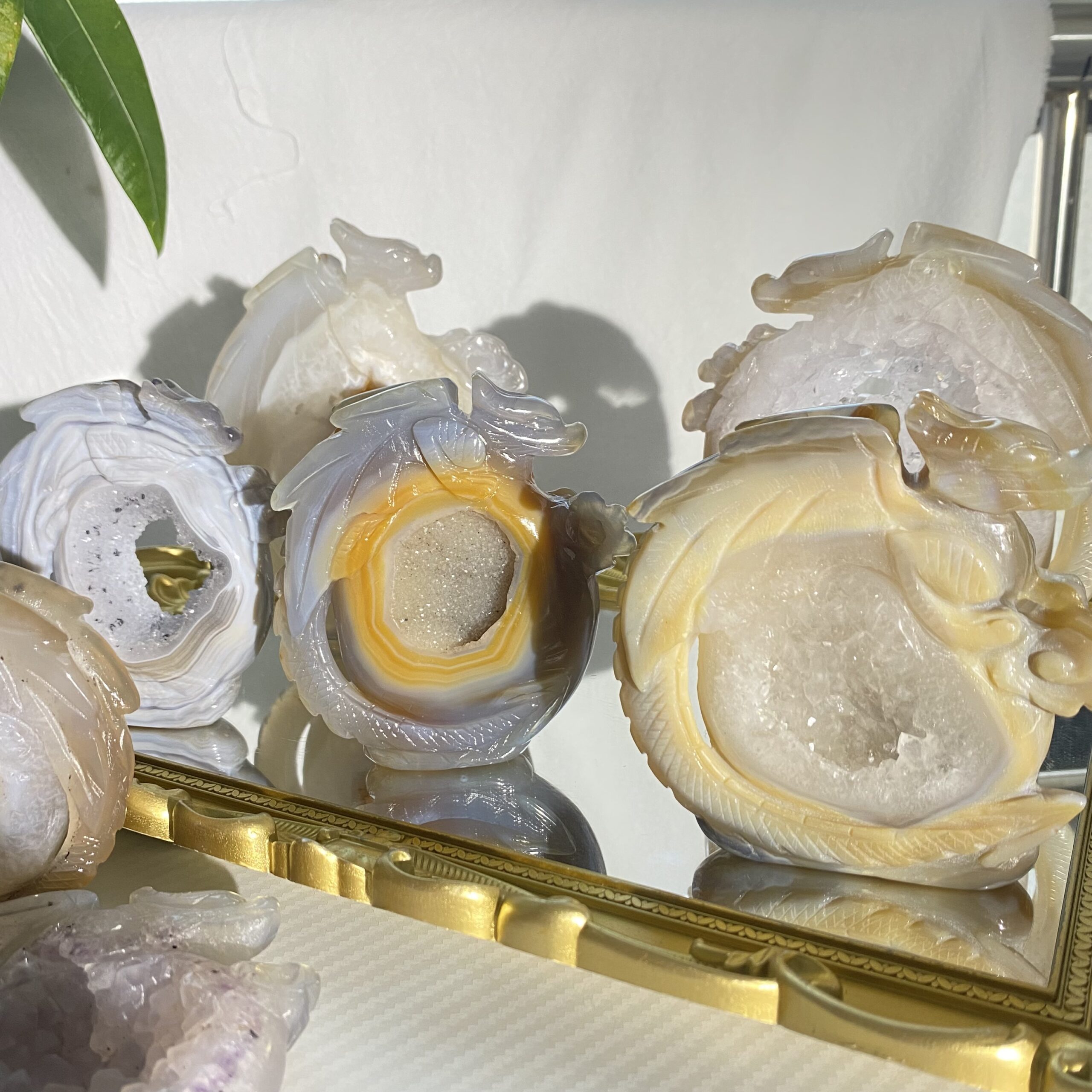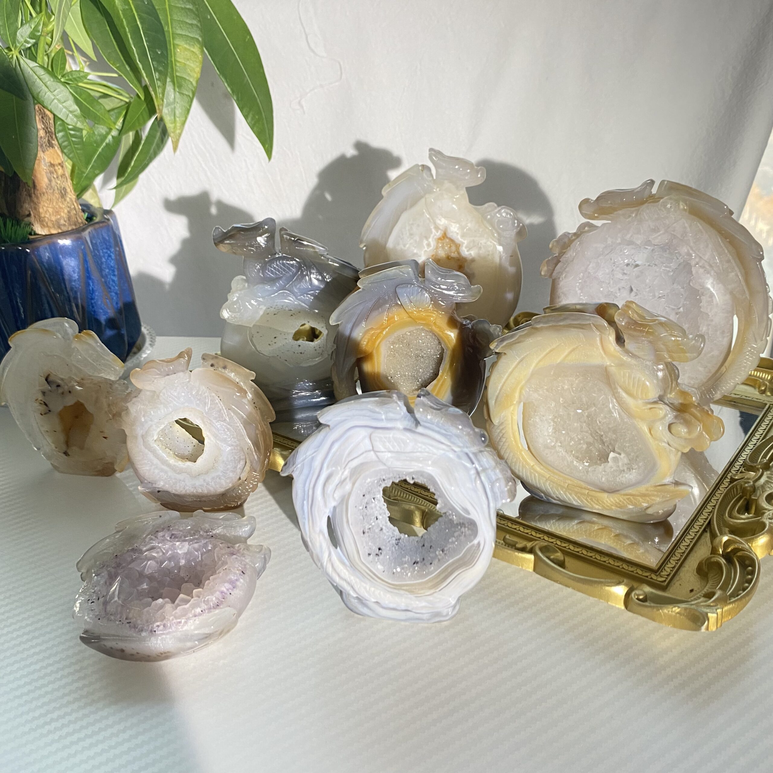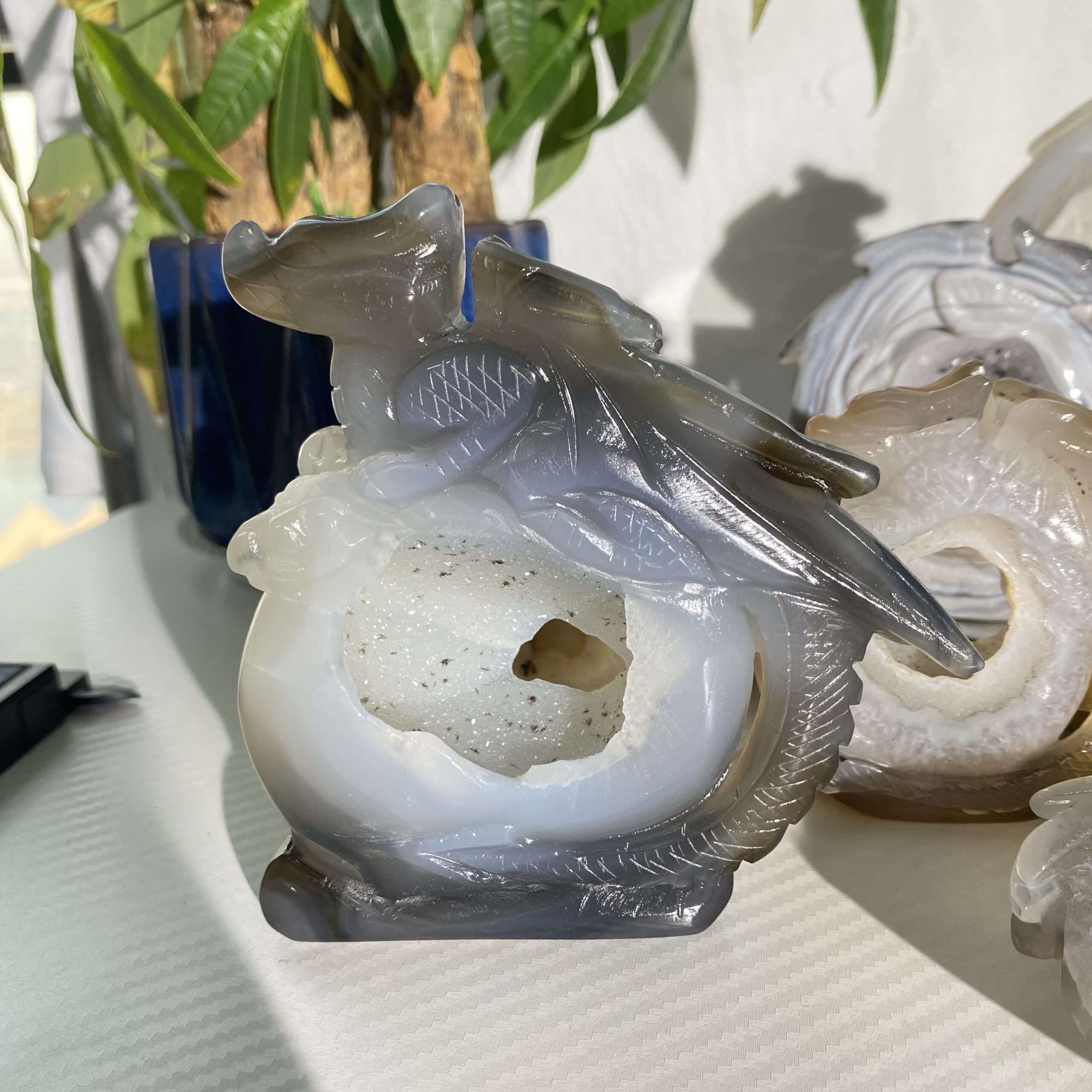 Home CARVING & CRAFT Natural Druzy Agate Dragon Sculpture Crystal Dragon for Wisdom & Power Spiritual Decor Random Delivery Wholesale Crystal