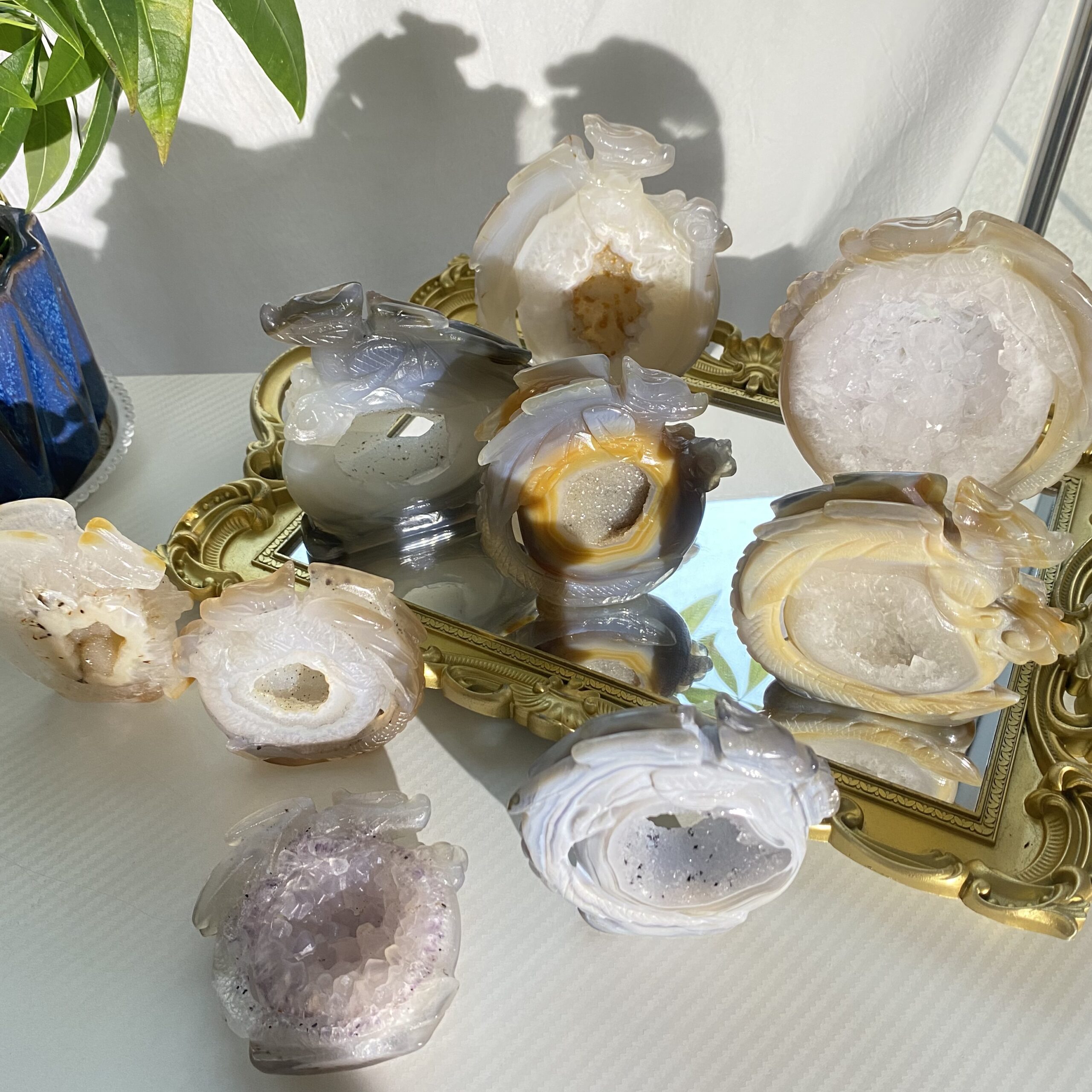 Natural druzy Agate Gourd Carving Reiki Healing Crystal Gift Crystal Carving Energy Crystal Wholesale Crystal
