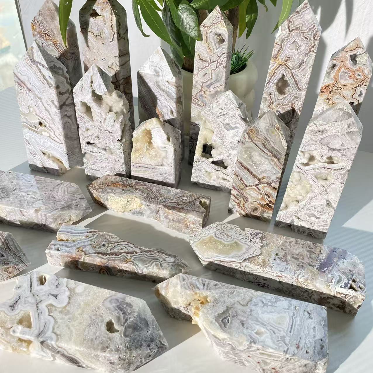 Front desk/Entrance: The distinct layer patterns of agate symbolize “accumulation of wealth”, attracting customers.