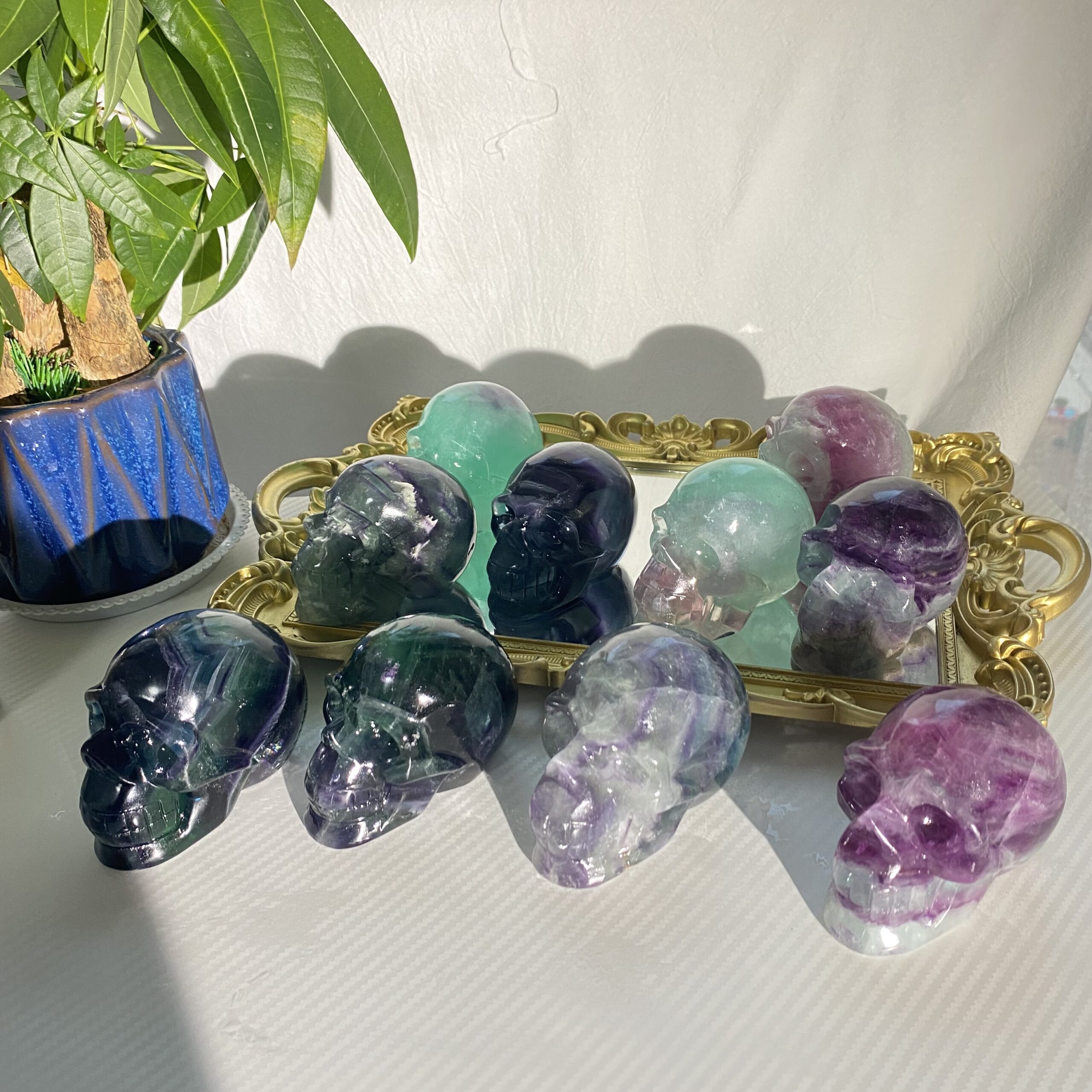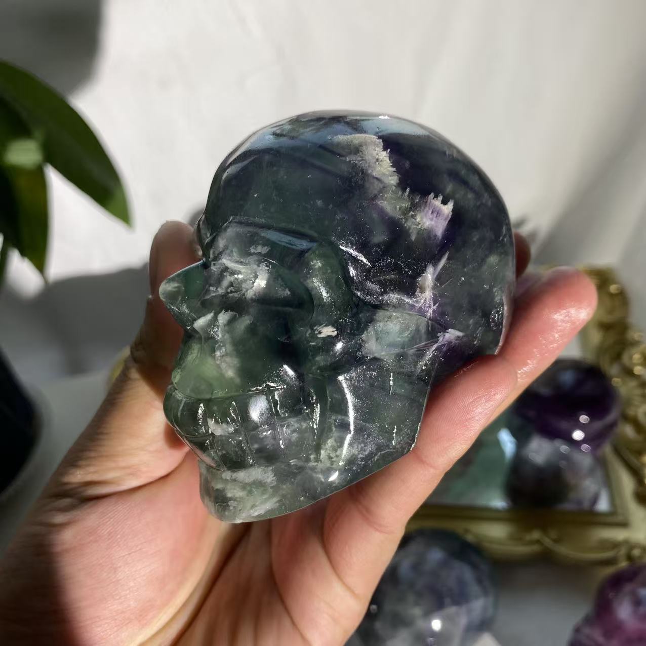 Natural Fluorite Skull Carving – Rainbow Crystal Memento Mori for Mental Clarity Random Color Wholesale Crystal