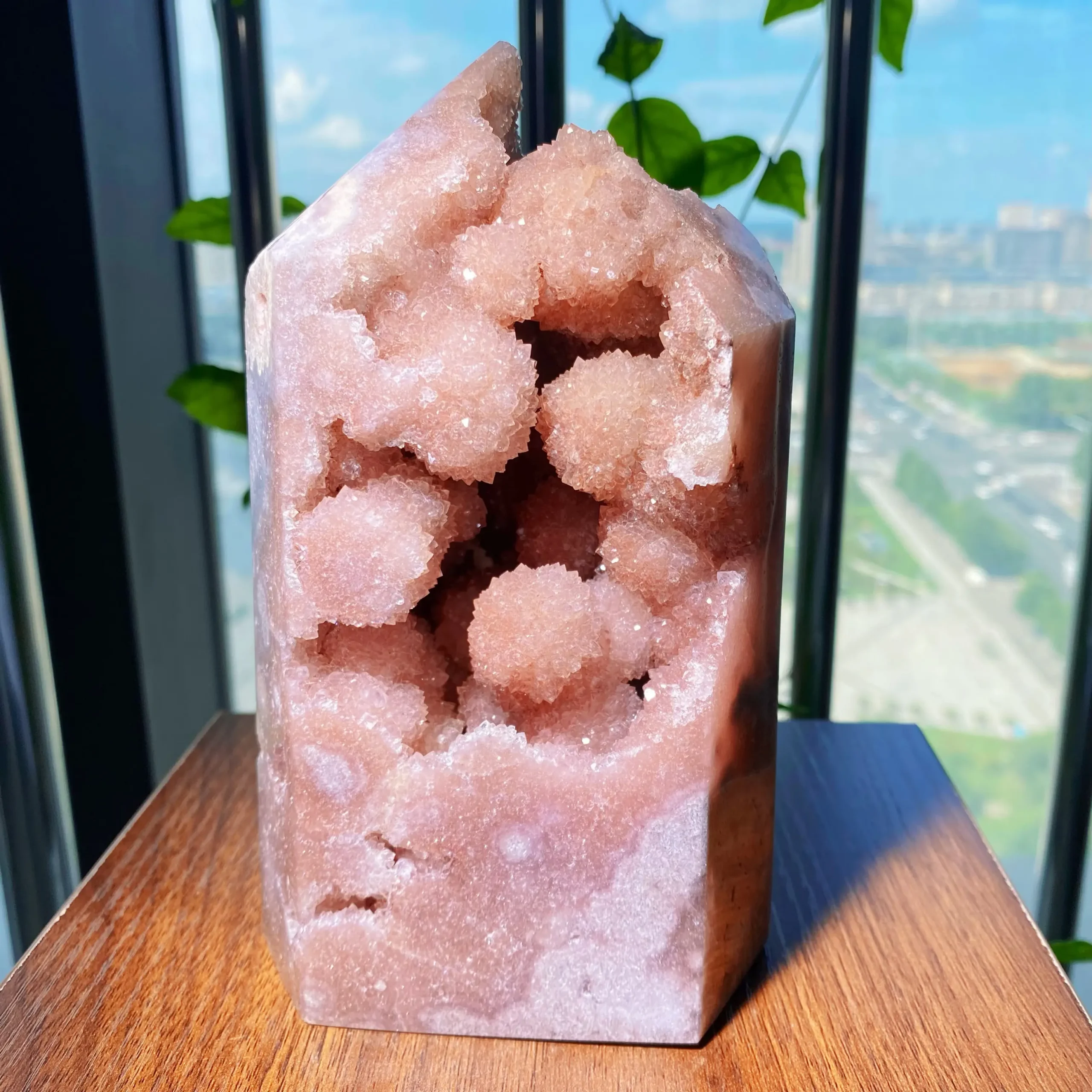 Home TOWER Natural Orange Pink Amethyst Point Tower – Natural Art for Shelves, Offices & Meditation Spaces Wholesale Crystal