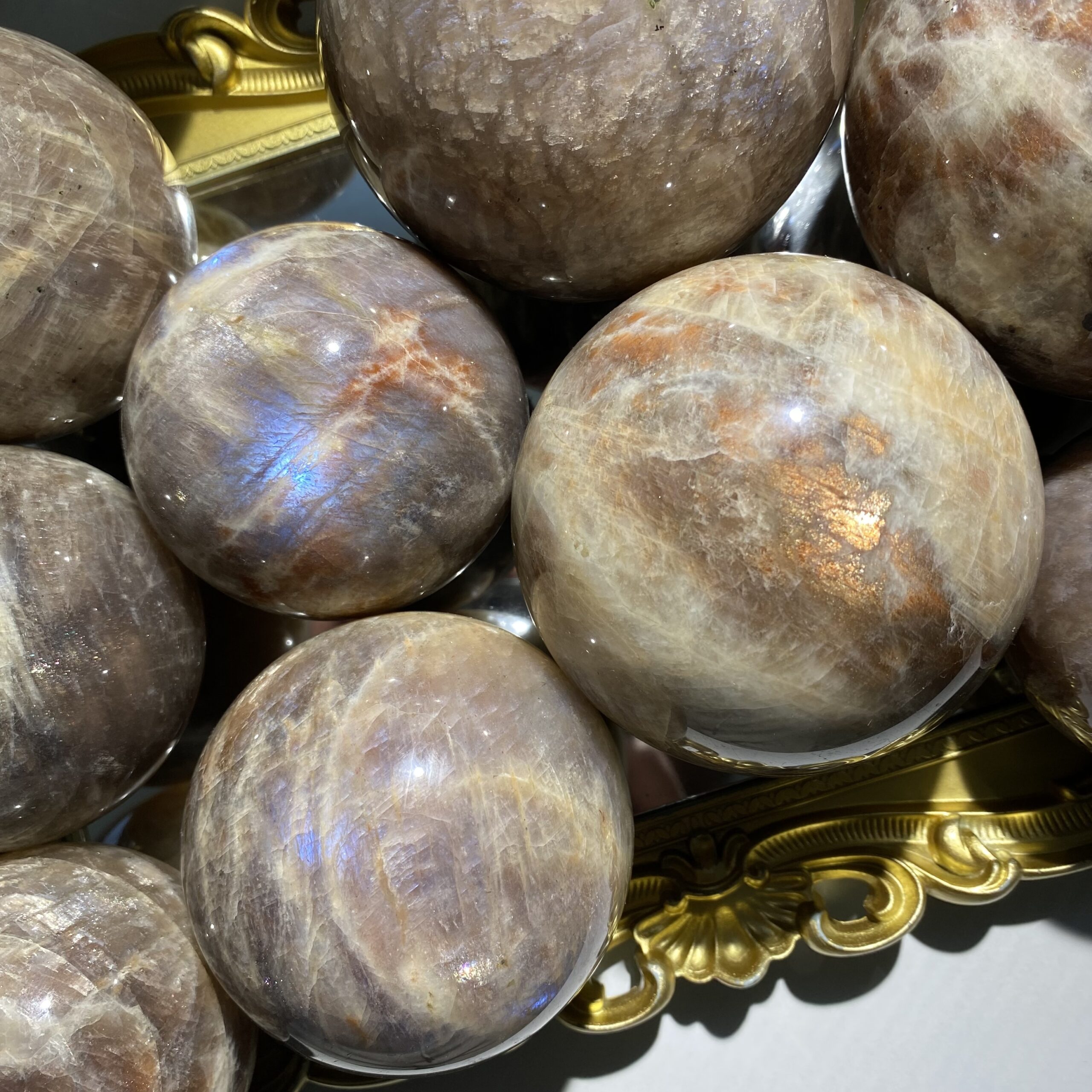 Natural Blue Moonstone Sunstone Sphere Strawberry Sphere Feminine Energy Crystal Self Care Crystal Calming Crystal Wholesale Crystal