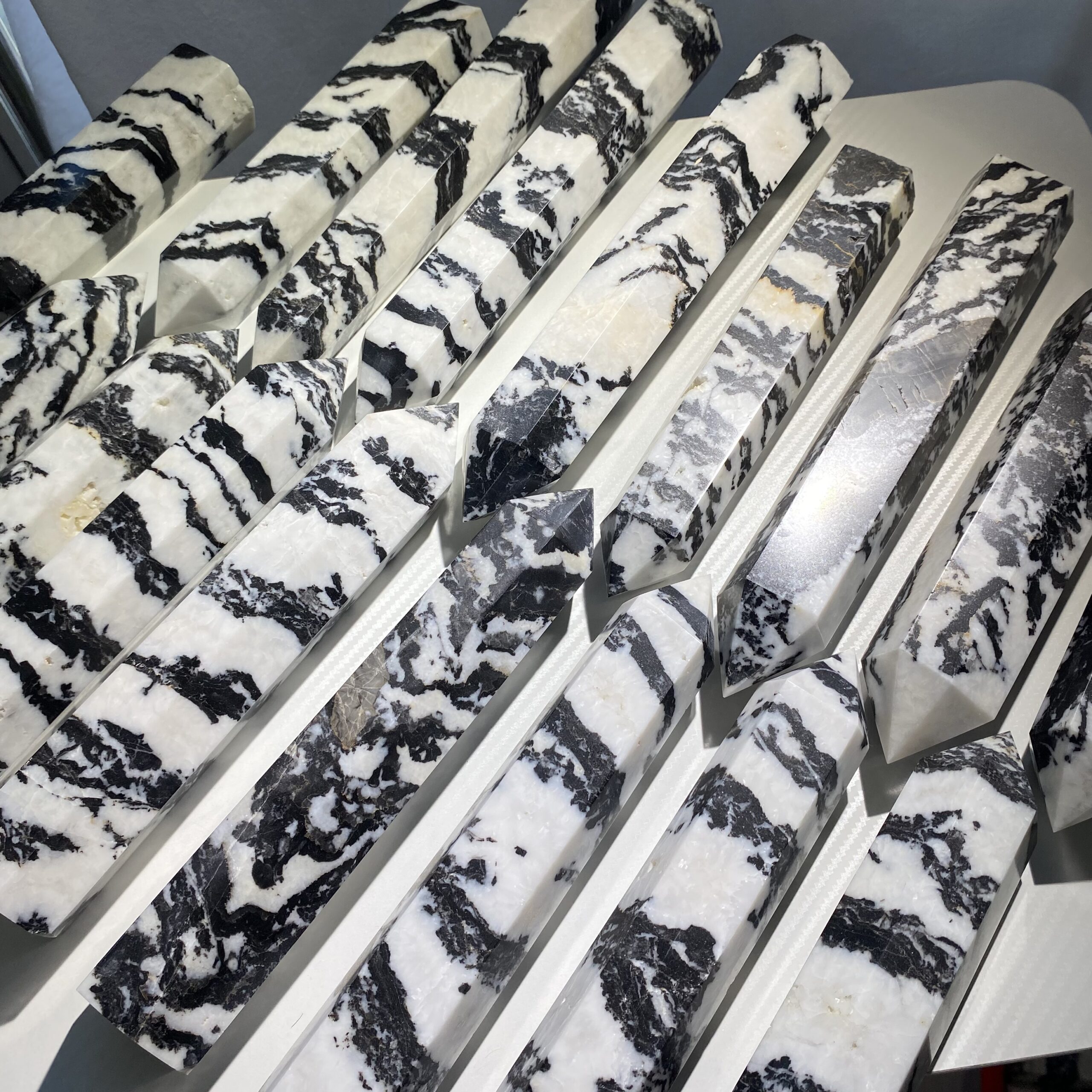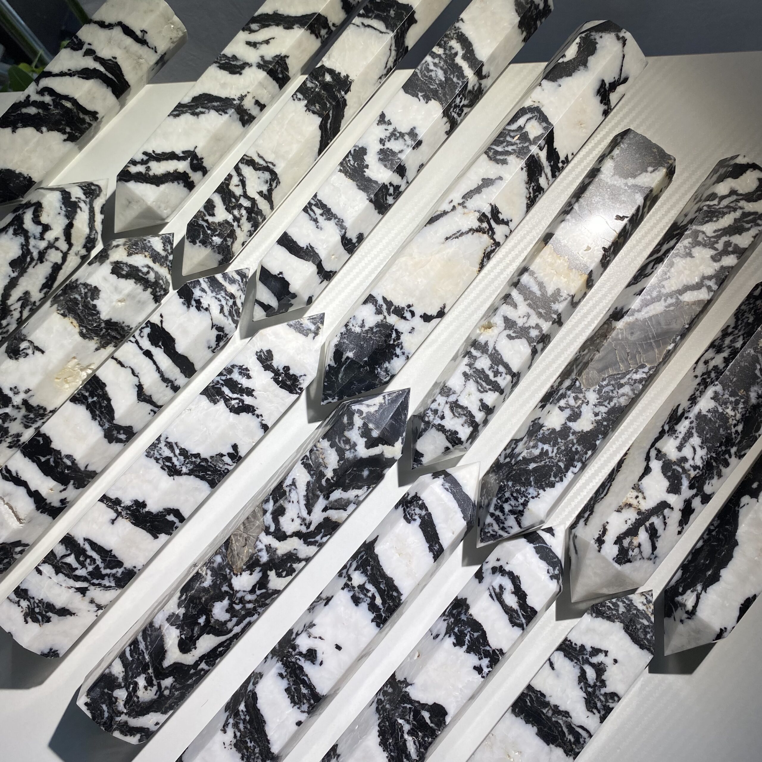 Home TOWER Natural Zebra Stone Tower – Black and White Banded Jasper Obelisk for Grounding & Balance Wholesale Crysta